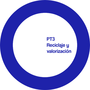 Organizado en PT según las fases del ciclo de gestión de residuos en un enfoque de economía circular