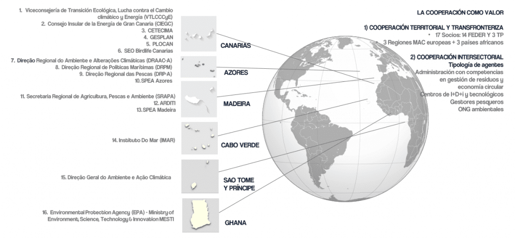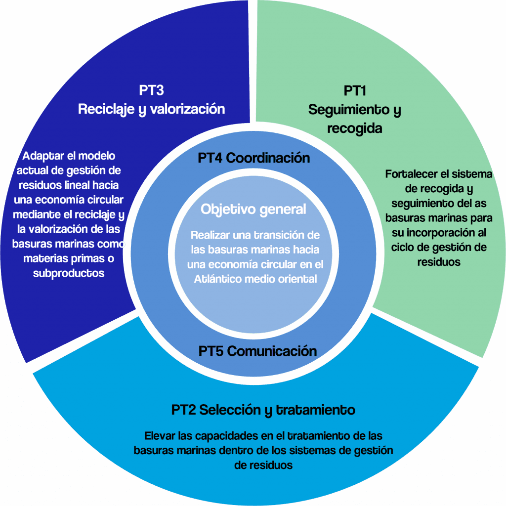 ▪Alienado con esta idea y en base a los resultados del proyecto OCEANLIT, financiado por la segunda convocatoria del Programa INTERREG MAC 2014-2020 y ejecutado entre 2020 y 2023, surge esta propuesta de proyecto CIRCULAROCEAN que tiene como objetivo general, realizar una transición de las basuras marinas hacia una economía circular en los territorios del Atlántico Medio Occidental mediante la cooperación. Esta idea de proyecto de cooperación territorial se basa en un proceso colaborativo, participativo y abierto entre las distintas regiones que forman este espacio de cooperación del Atlántico medio oriental, con la participación de administraciones públicas, centros de investigación y ONGs vinculadas al conocimiento de las basuras marinas y la gestión de los residuos que proporcione una estrategia común y sostenible con enfoque circular donde deben convergen actividades de transferencia de conocimiento sobre la problemática, sensibilización en actividades económicas como el turismo, la pesca o puertos, acciones piloto sobre gestión de las basuras marinas, nuevos modelos de negocio circulares e intercambio de buenas prácticas y experiencias.