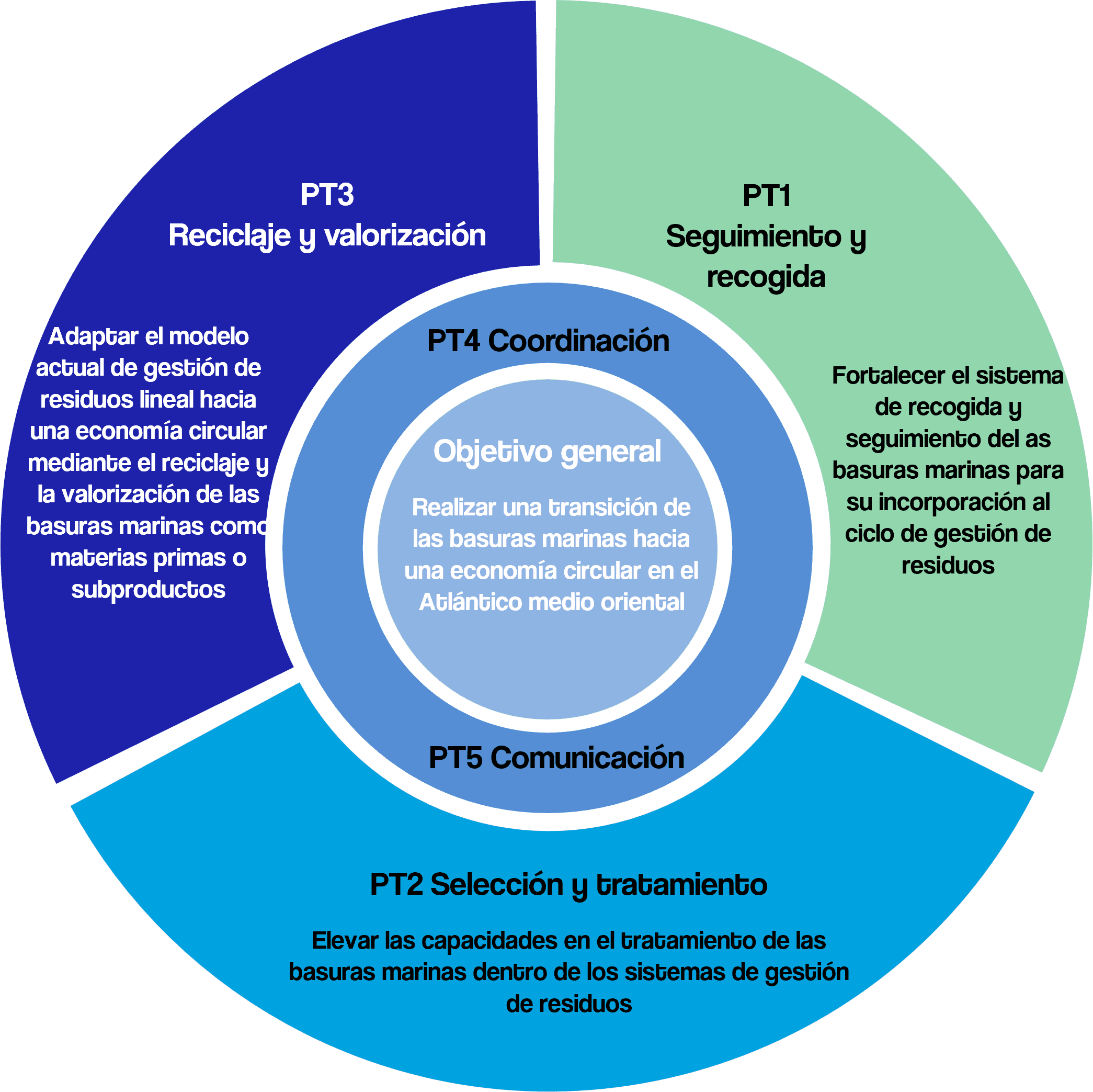 ▪Alienado con esta idea y en base a los resultados del proyecto OCEANLIT, financiado por la segunda convocatoria del Programa INTERREG MAC 2014-2020 y ejecutado entre 2020 y 2023, surge esta propuesta de proyecto CIRCULAROCEAN que tiene como objetivo general, realizar una transición de las basuras marinas hacia una economía circular en los territorios del Atlántico Medio Occidental mediante la cooperación. Esta idea de proyecto de cooperación territorial se basa en un proceso colaborativo, participativo y abierto entre las distintas regiones que forman este espacio de cooperación del Atlántico medio oriental, con la participación de administraciones públicas, centros de investigación y ONGs vinculadas al conocimiento de las basuras marinas y la gestión de los residuos que proporcione una estrategia común y sostenible con enfoque circular donde deben convergen actividades de transferencia de conocimiento sobre la problemática, sensibilización en actividades económicas como el turismo, la pesca o puertos, acciones piloto sobre gestión de las basuras marinas, nuevos modelos de negocio circulares e intercambio de buenas prácticas y experiencias.