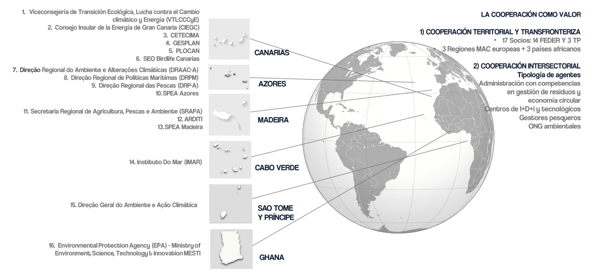 ▪Los países y regiones participantes en el Programa INTERREG MAC 2021-2027 son eminentemente oceánicos y conforman en sí mismos, ventanas al mar que ofrecen numerosas oportunidades para fortalecer la investigación, la innovación y la circularidad en el marco de una gestión eficiente de las basuras marinas a través de generar sinergias y estrategias comunes entre estas regiones. Estos países y regiones poseen ecosistemas de conocimiento de las basuras marinas y gestión de residuos con agentes que podrían sumar masa crítica, recursos humanos, infraestructuras y medios que con una visión común podría favorecer un espacio de cooperación internacional que afronte los desafíos y retos que la gestión de las basuras marinas puede tener sobre la biodiversidad marina o la calidad ambiental de costas y mares, apoyando su transición hacia una economía circular.